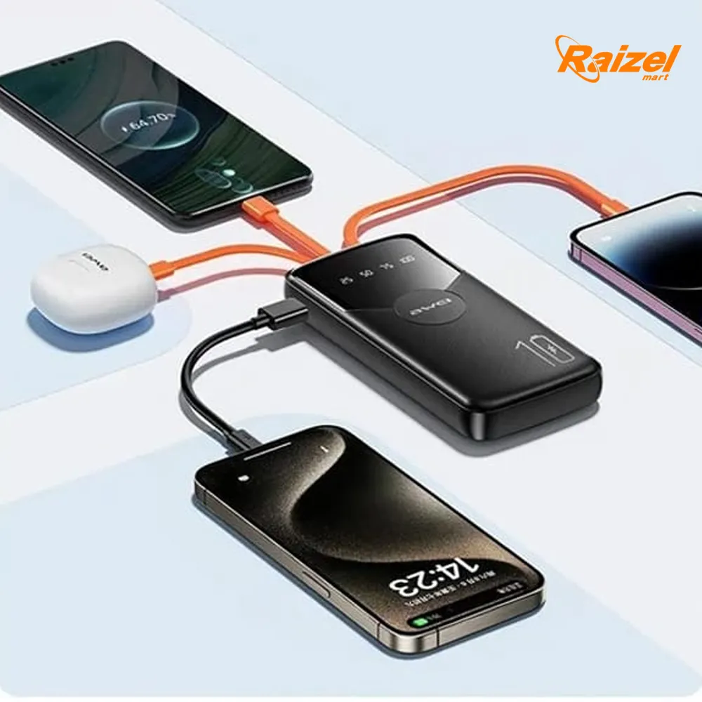 پاوربانک AWEI P67K با ظرفیت 10000 میلیآمپر ساعت و خروجی چندگانه، یک منبع تغذیه همهکاره و قابل اعتماد برای دستگاههای تلفن همراه شماست.